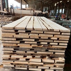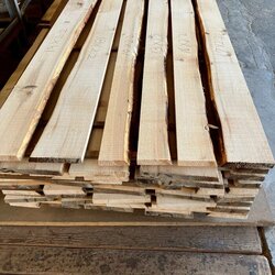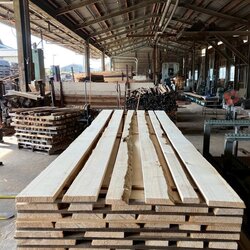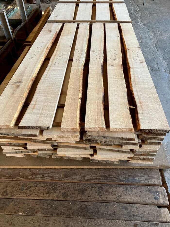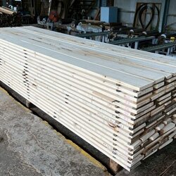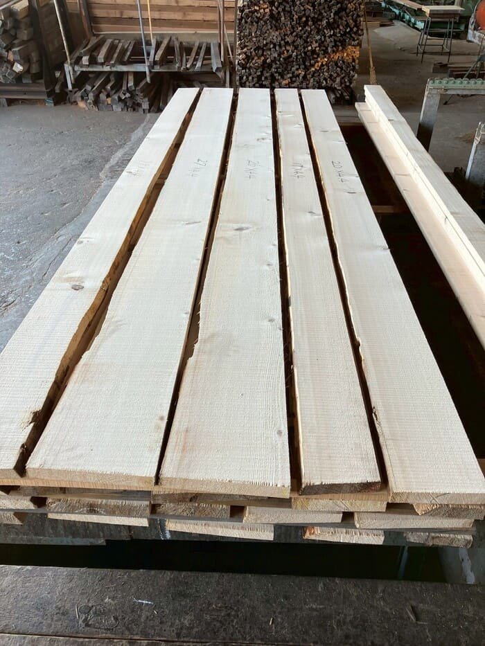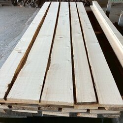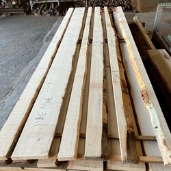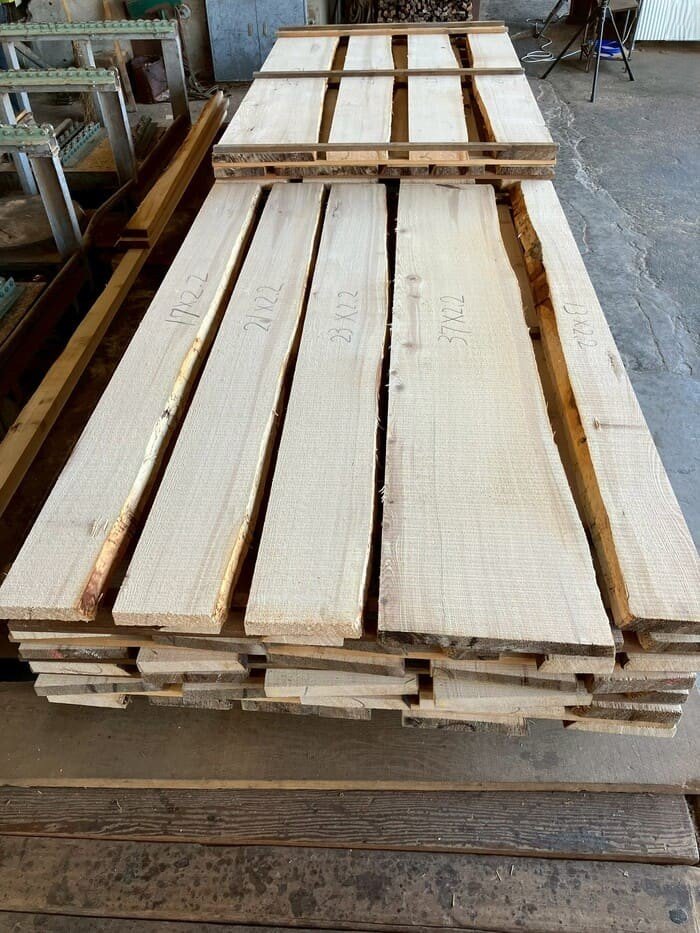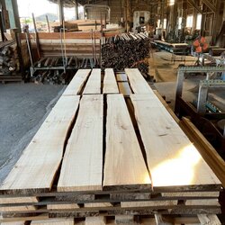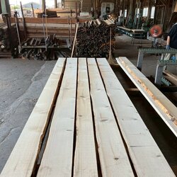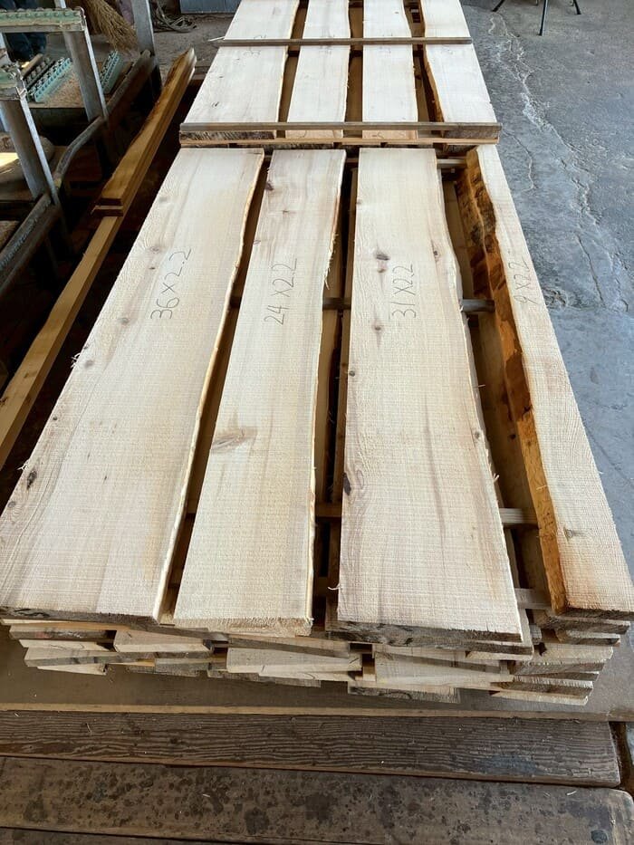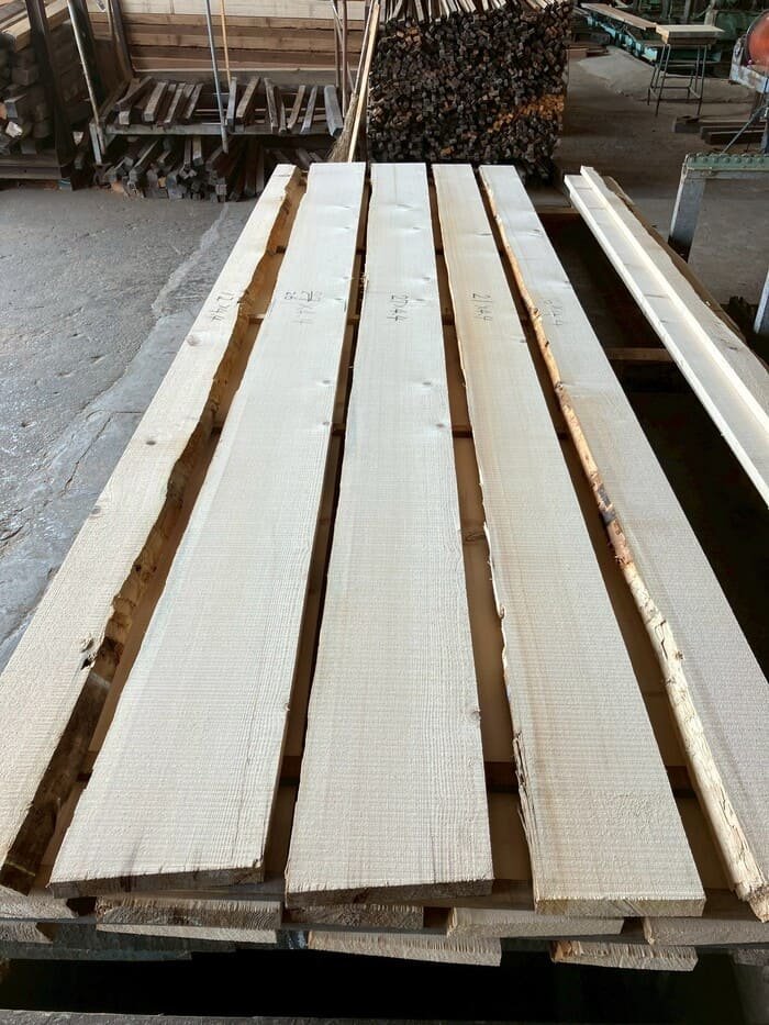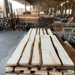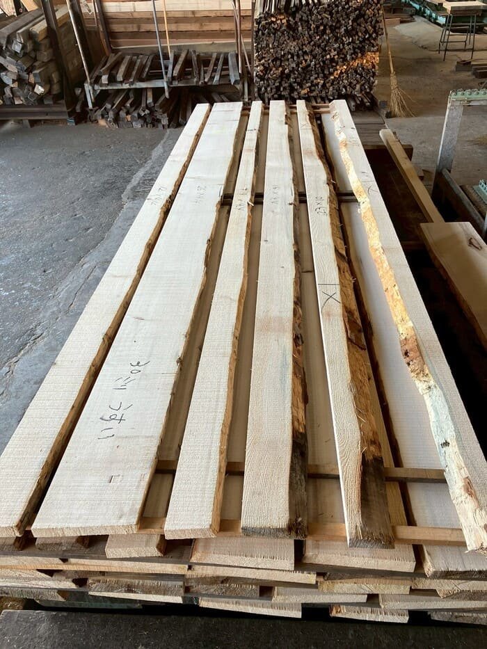 建具向けに長さ11mのバルサム丸太を元から2.2m、4.4m、4.4mにカットし厚み34mmに製材しています。