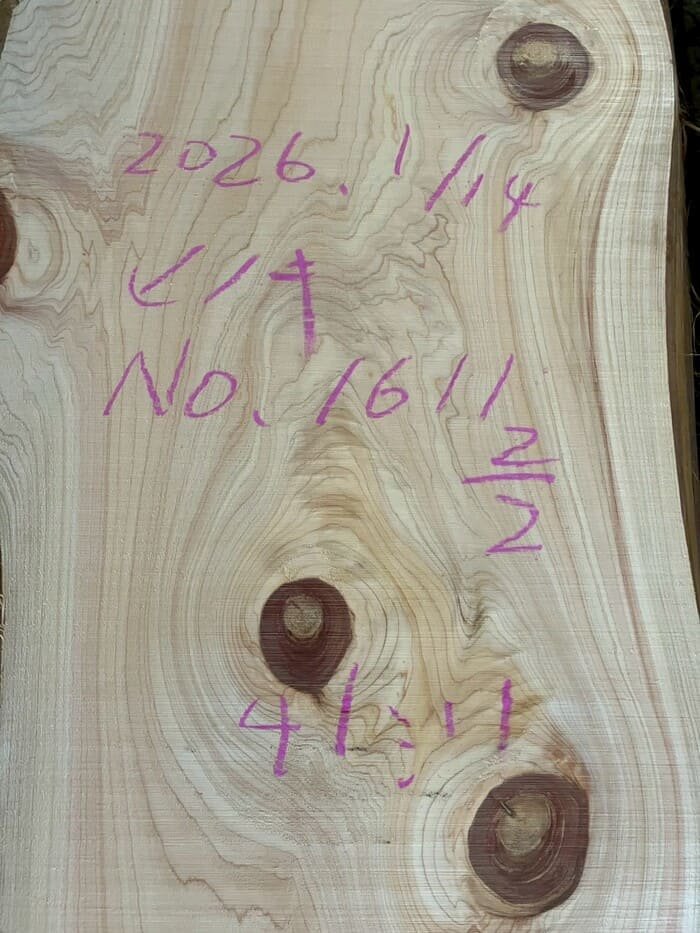 長さ2.0mの末側は、力強く大きな節が入っています。個性を強調したい店舗什器など、節の魅力を活かした製作におすすめです。