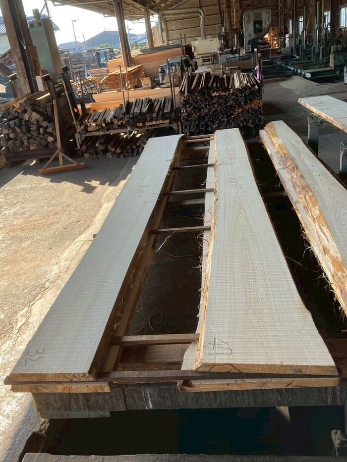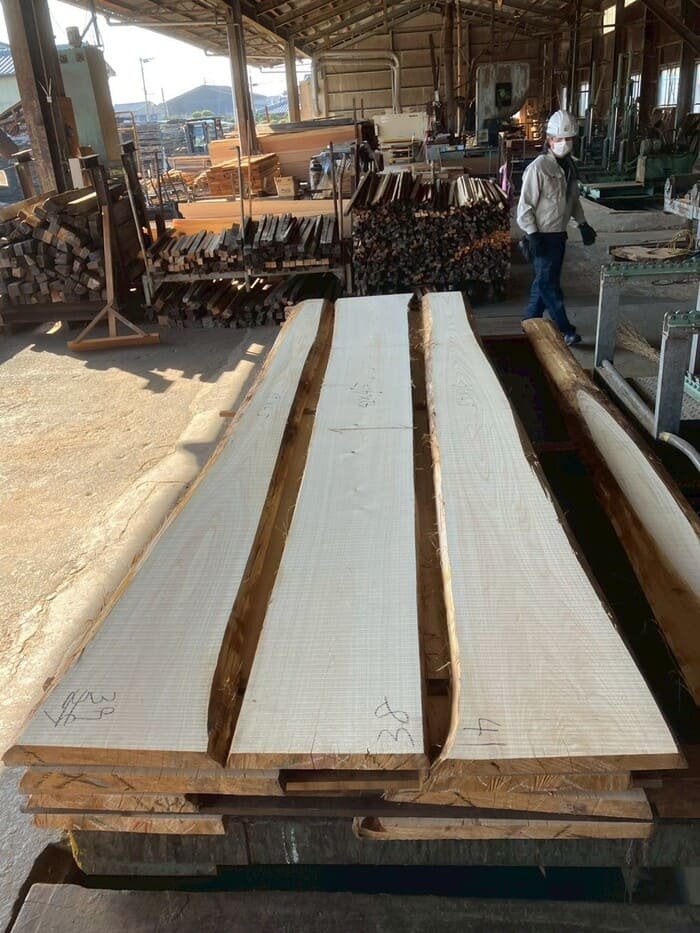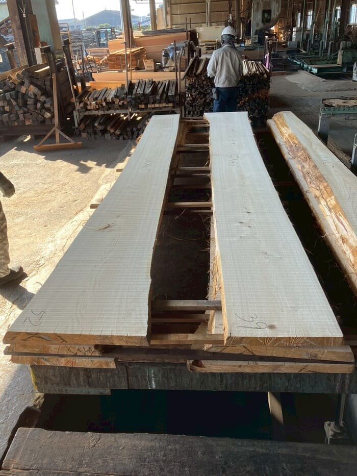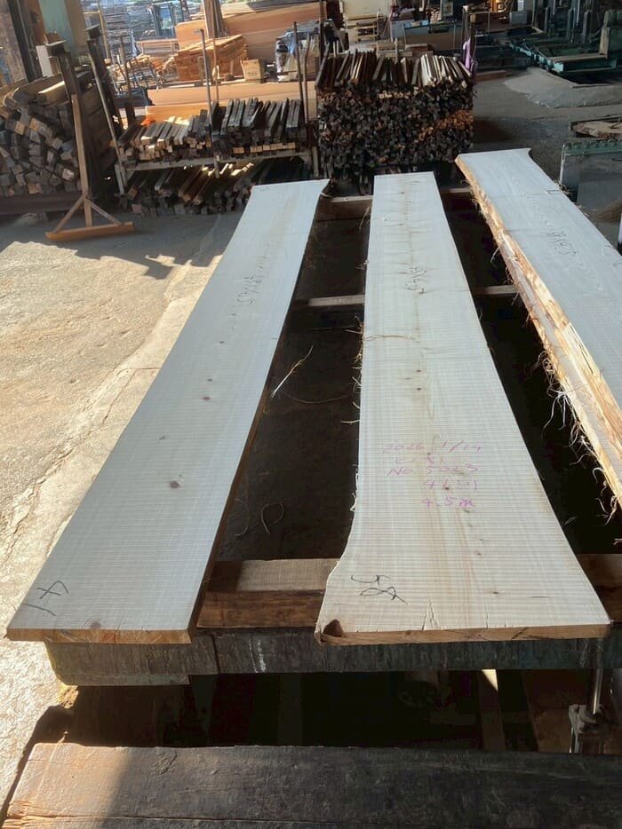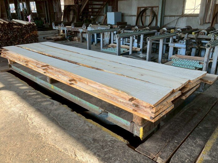 建具や天板向けに41mm厚で製材しました。アテが少なく素直な性質の材です。