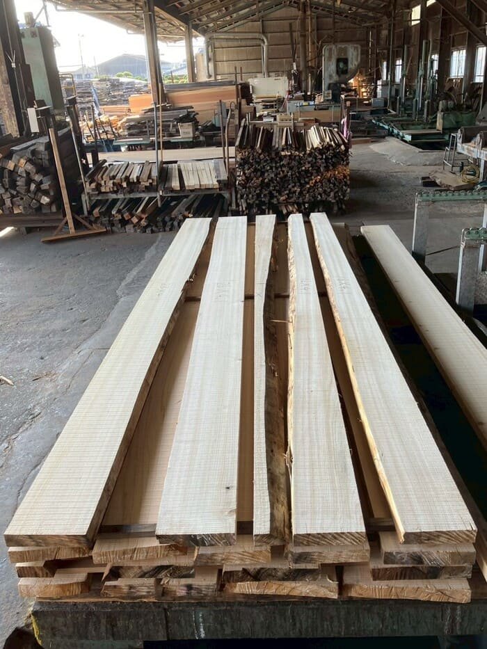 色は白で節が少ないヒノキ柾目材です。アテが少し見られますが、他に目立った欠点がありません。