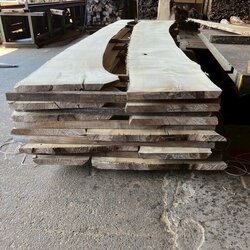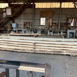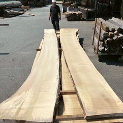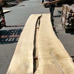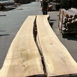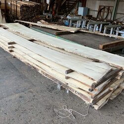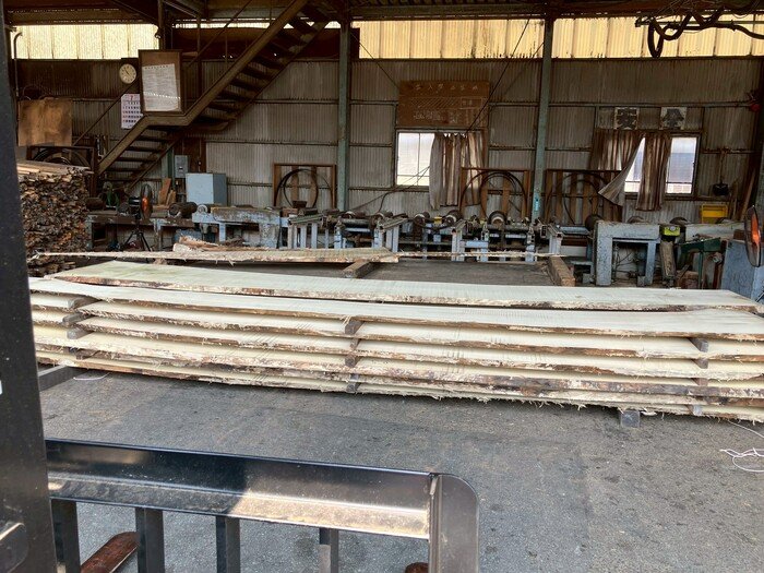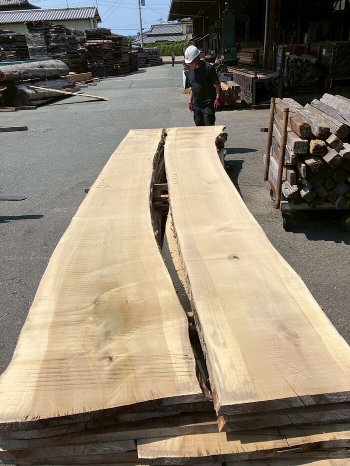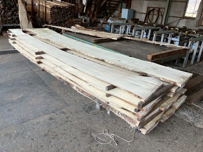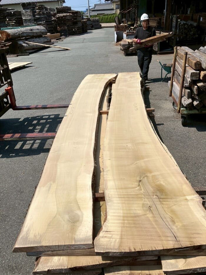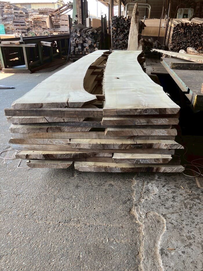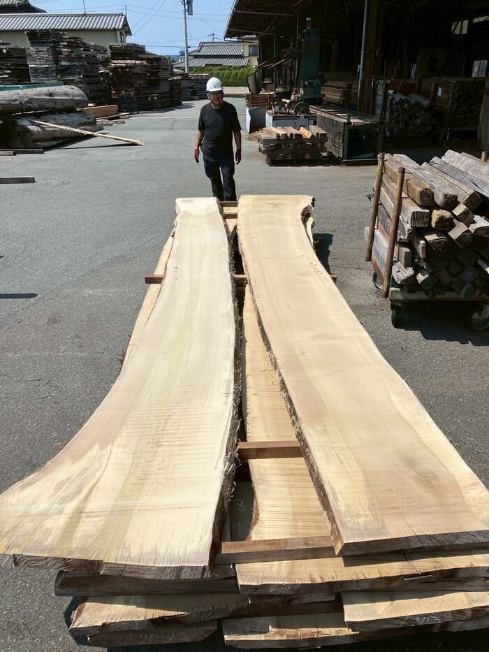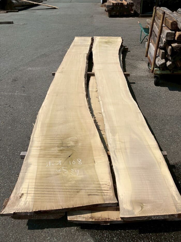 ホオ丸太を家具、天板向けに厚み45mmに製材しています。