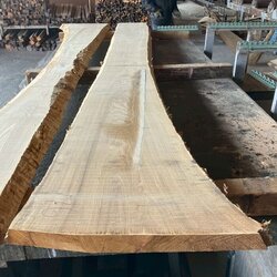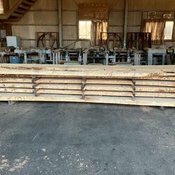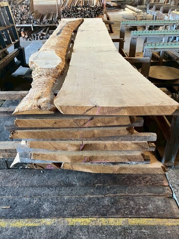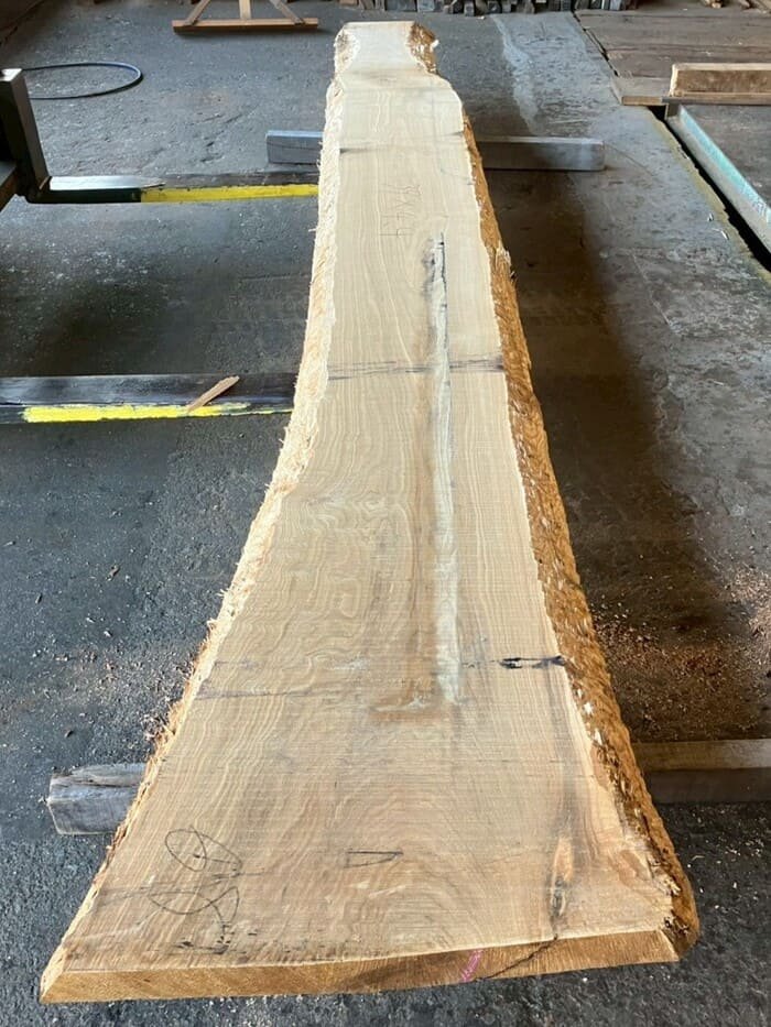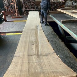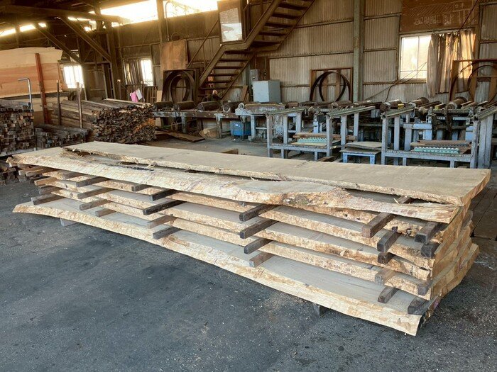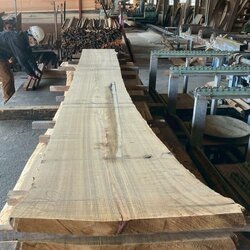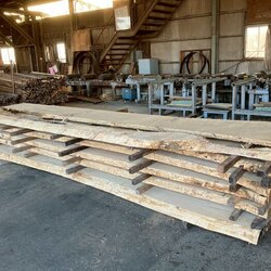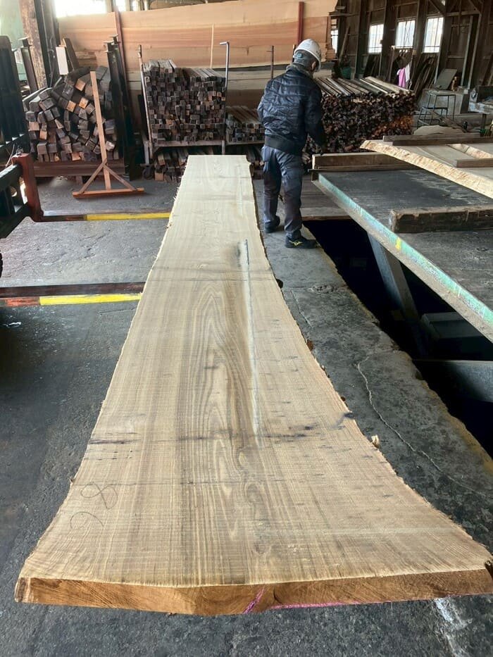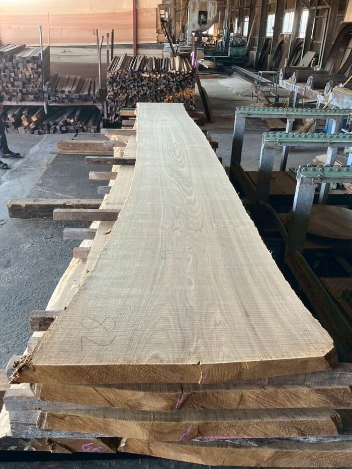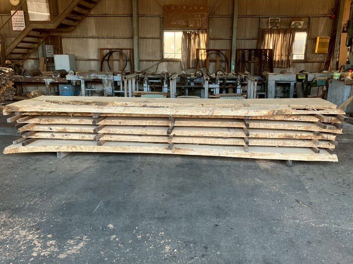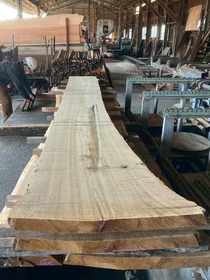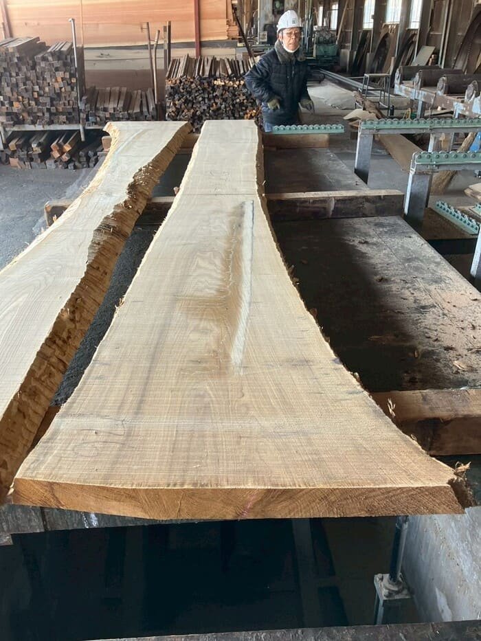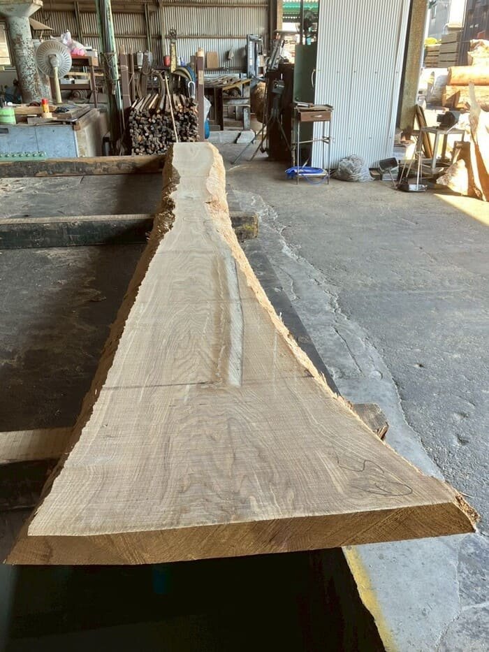 長さ4.4mの栗(クリ)丸太を厚み66mmに製材しています。