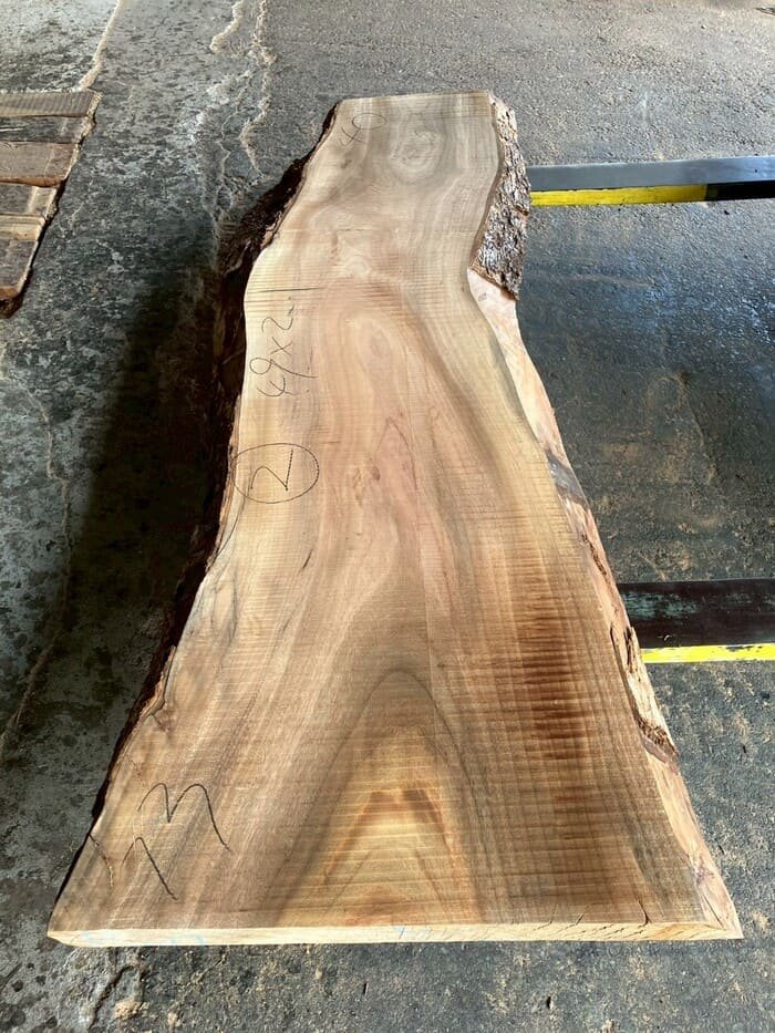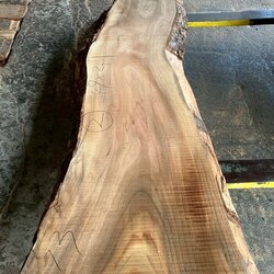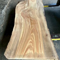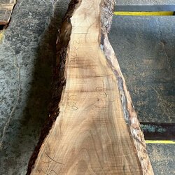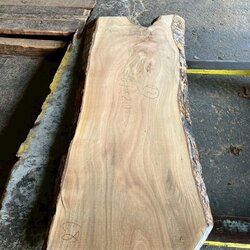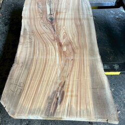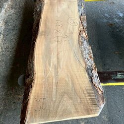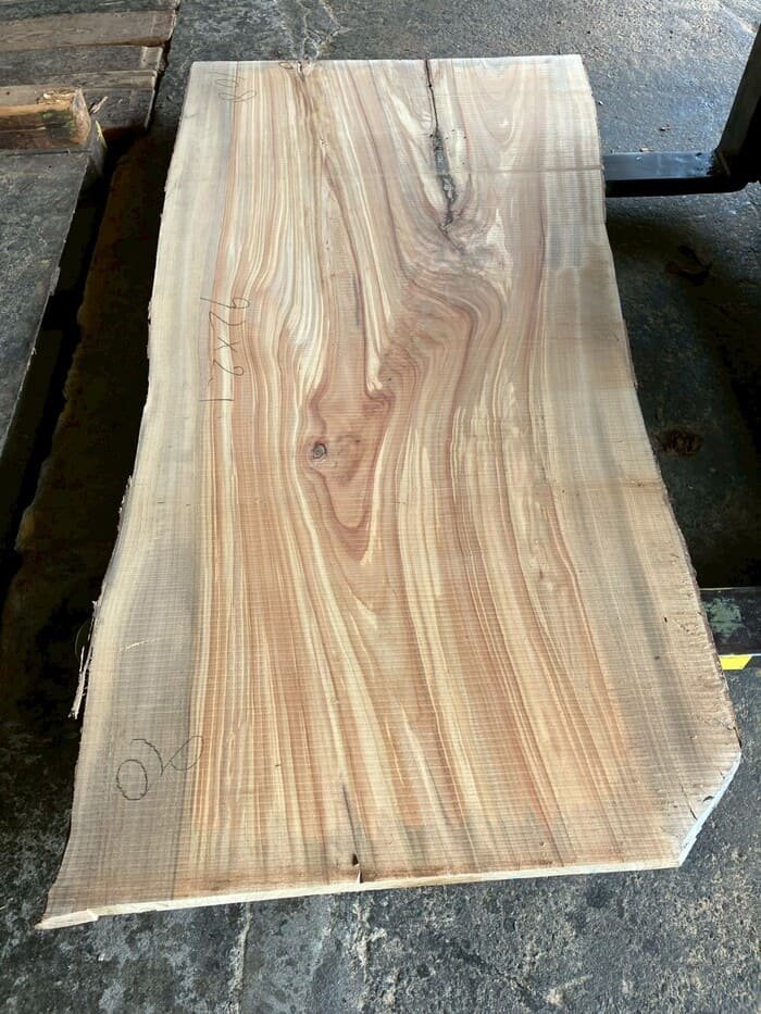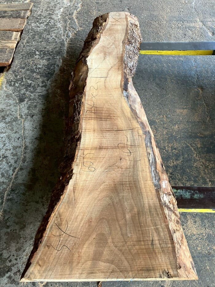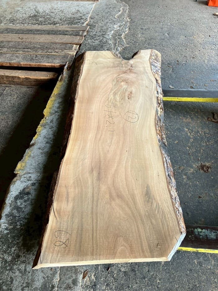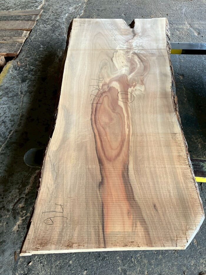 厚み60mm、天板向けに製材をしています。13枚のうち6枚に入皮や流れ節が入っています。