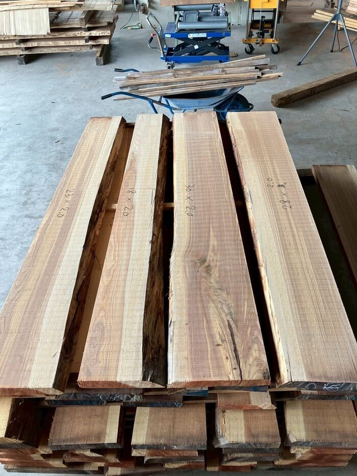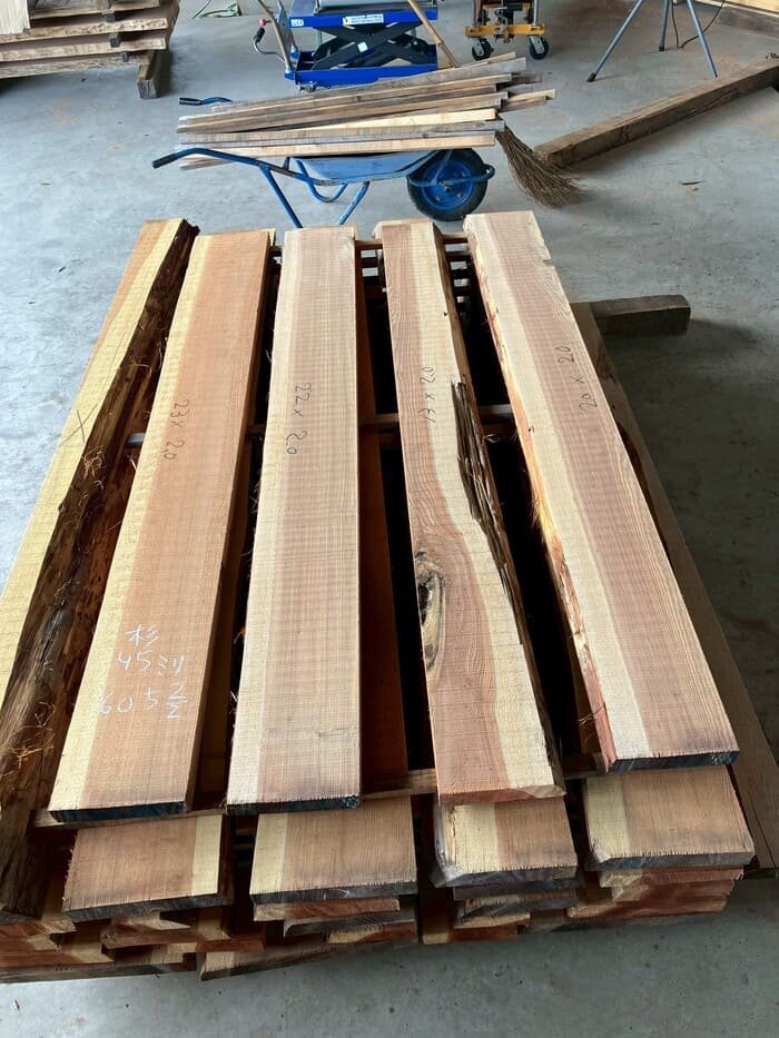 白太の太さは5cm。節と割れが少ないスギ材ですが、コブシが多く入っています。