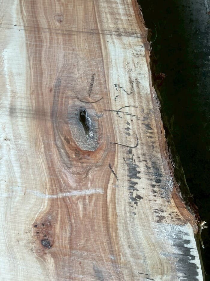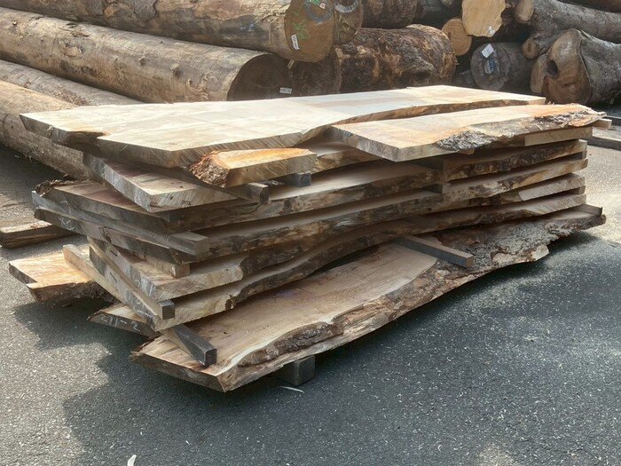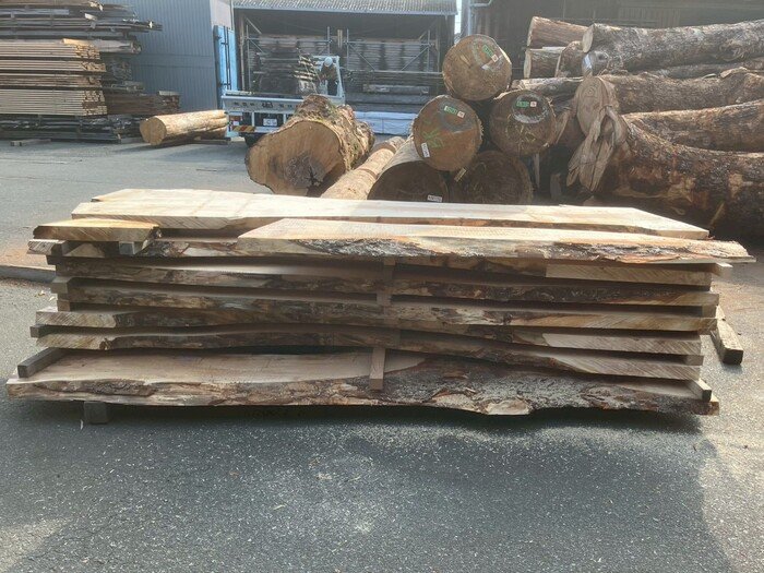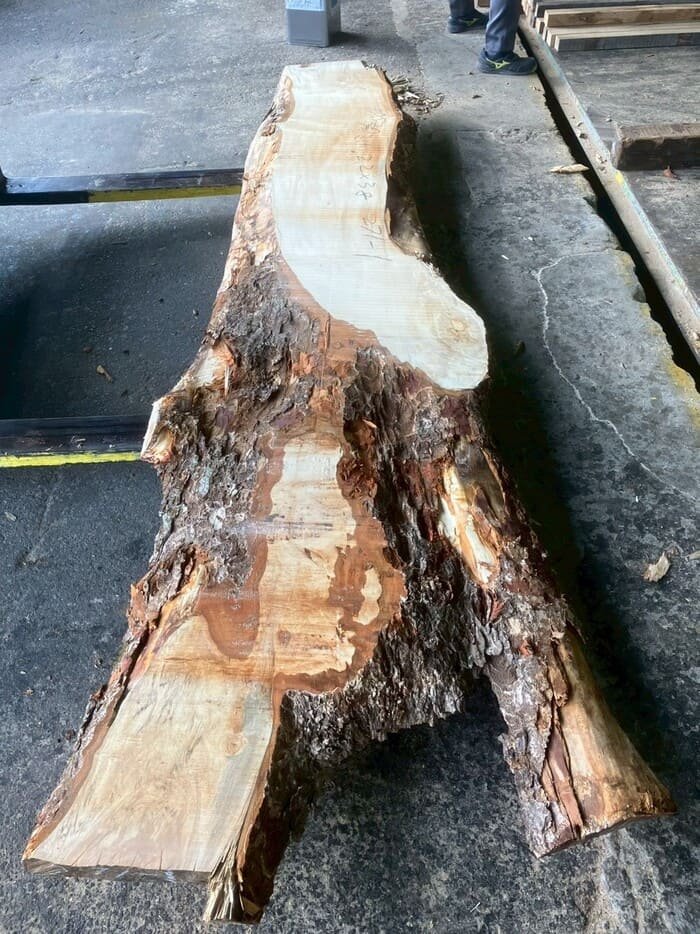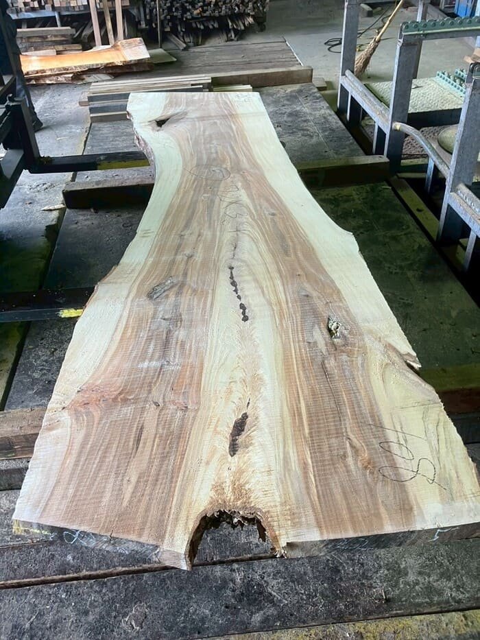 二又の栃(トチ)を天板向けに製材しています。