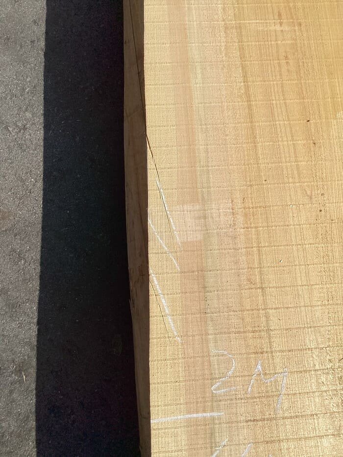 ネジレがあるため、背割れが入っています。