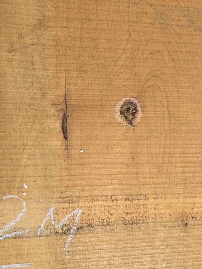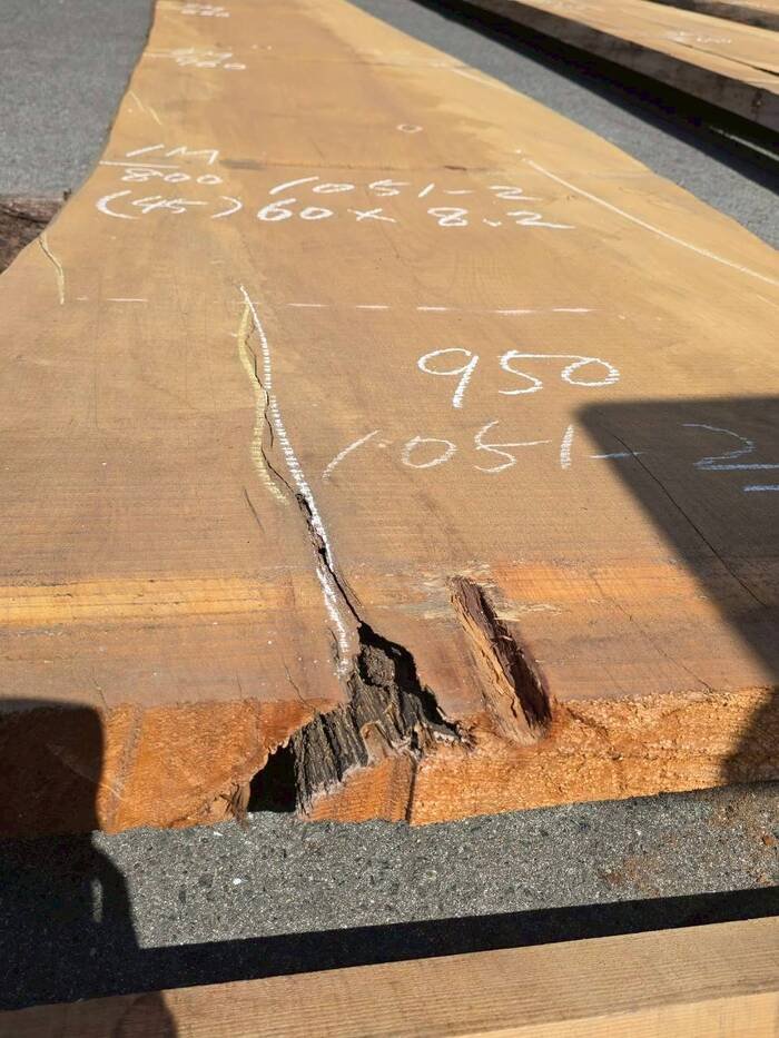 元から600mmの割れと全体的に背割れが入っています。