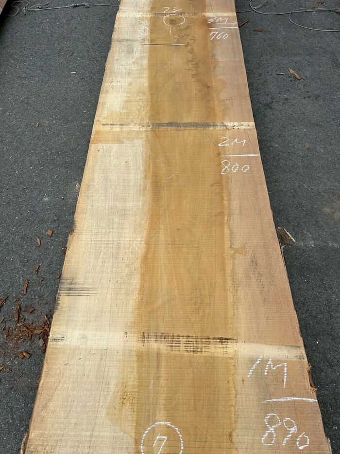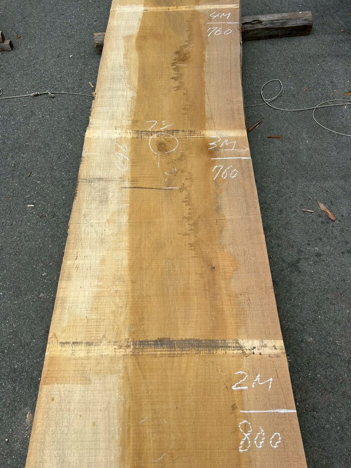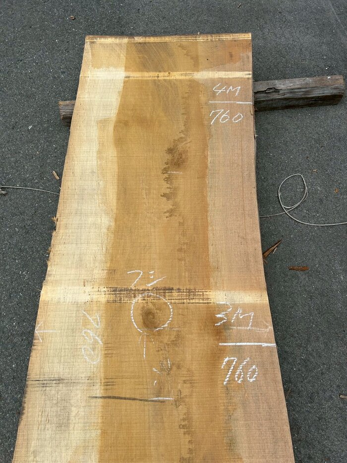 元から300mmの割れ、3m付近に3寸程度の節2つ。2.5m付近にハブシも入っています。