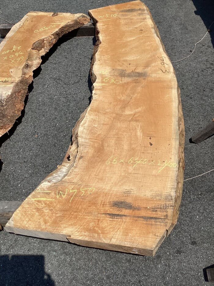 キレイな杢が入った白いカエデの一枚板です。