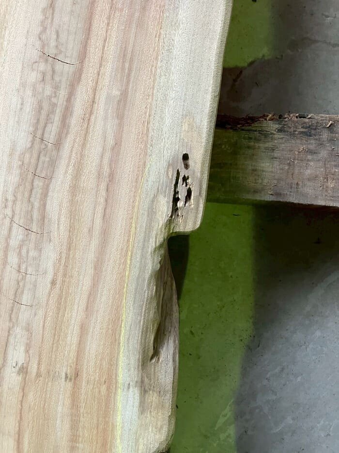 両面共に節、木口割れ、エラ割れ、虫穴、傷、当たり残りがあります。