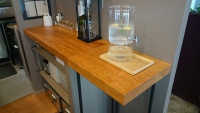 | お客様の声 | ウォールナットのカウンターを探しに行き、 ウォールナットとチェリーで提案していただきました。 少し明るめの色のチェリーを選んで良かったと思います。 店内の雰囲気も明るくなり、 全て同じ木から取れた板でテーブルを作る希望も叶いました。 |