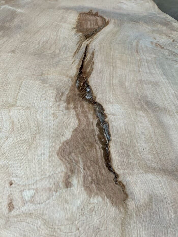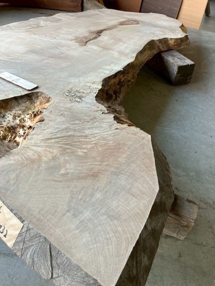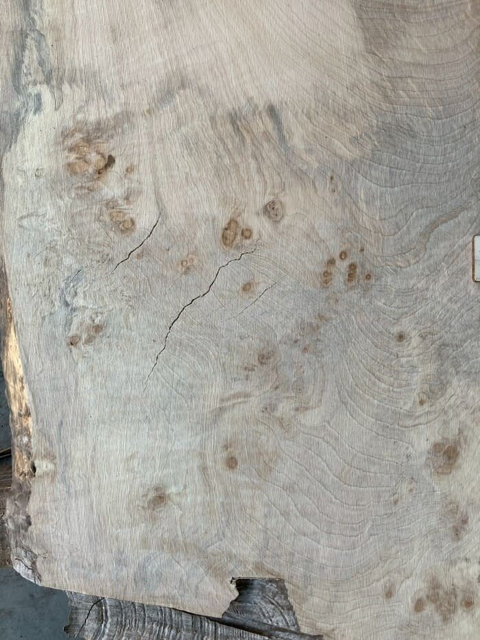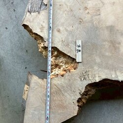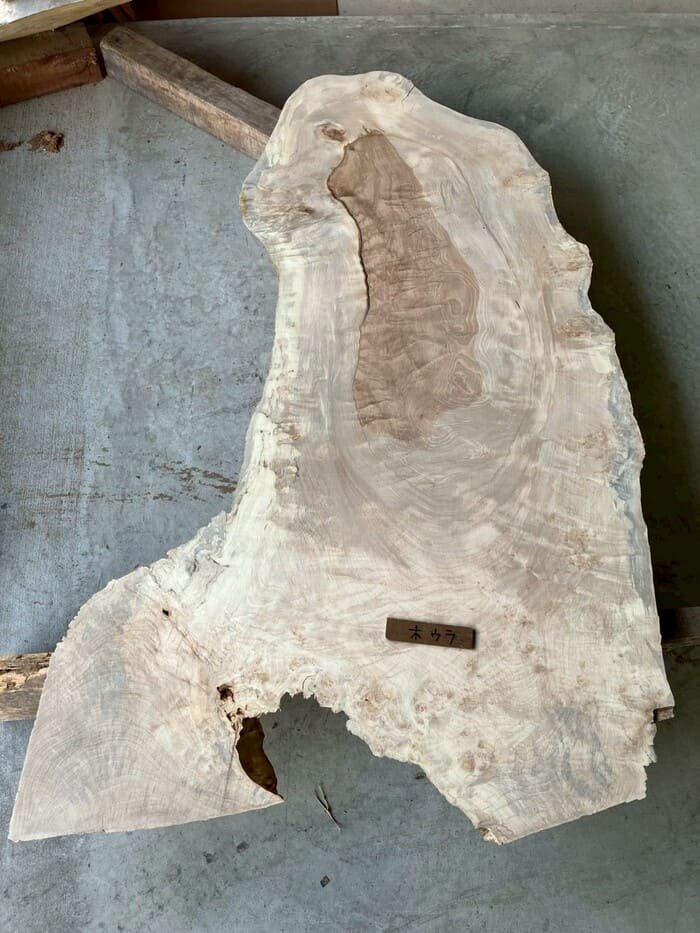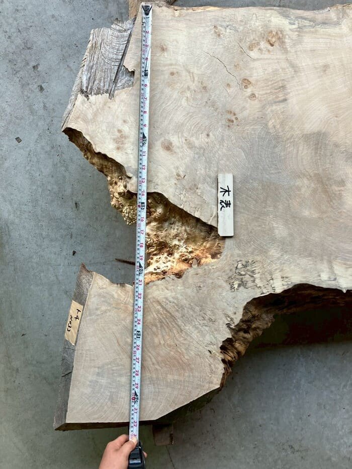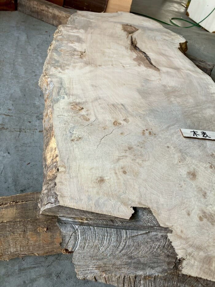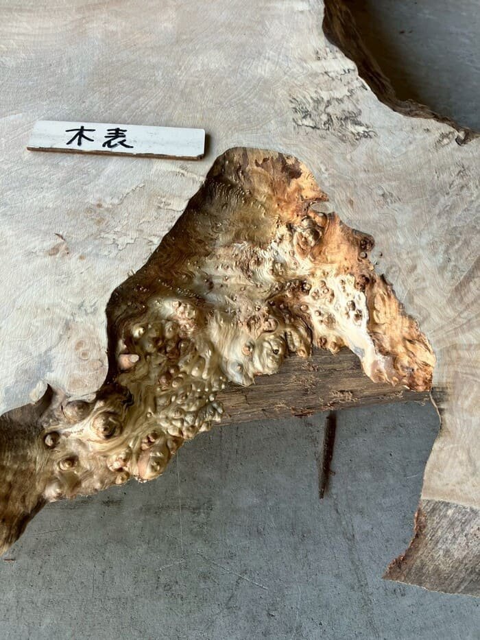 表面は中央割れ、白太エラ割れ、白太アオあり、コブ杢があります。
