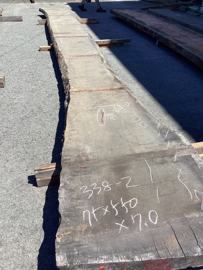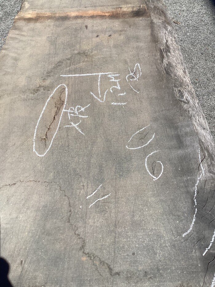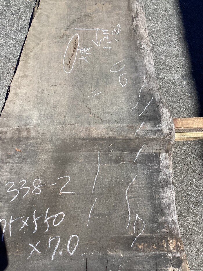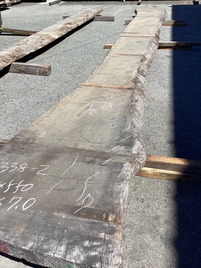 補修すれば7mの木目がキレイなチェリー一枚板です。