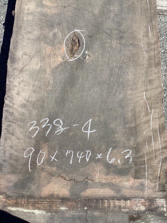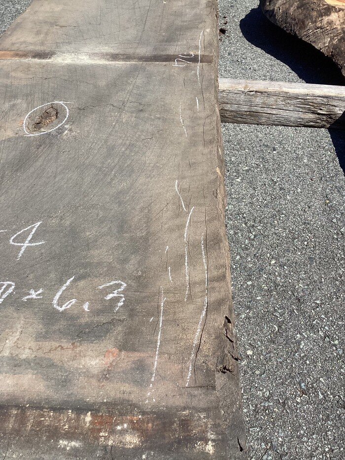 元から900mmのところに60mm位の死節と片耳白太付近に割れが入っています。