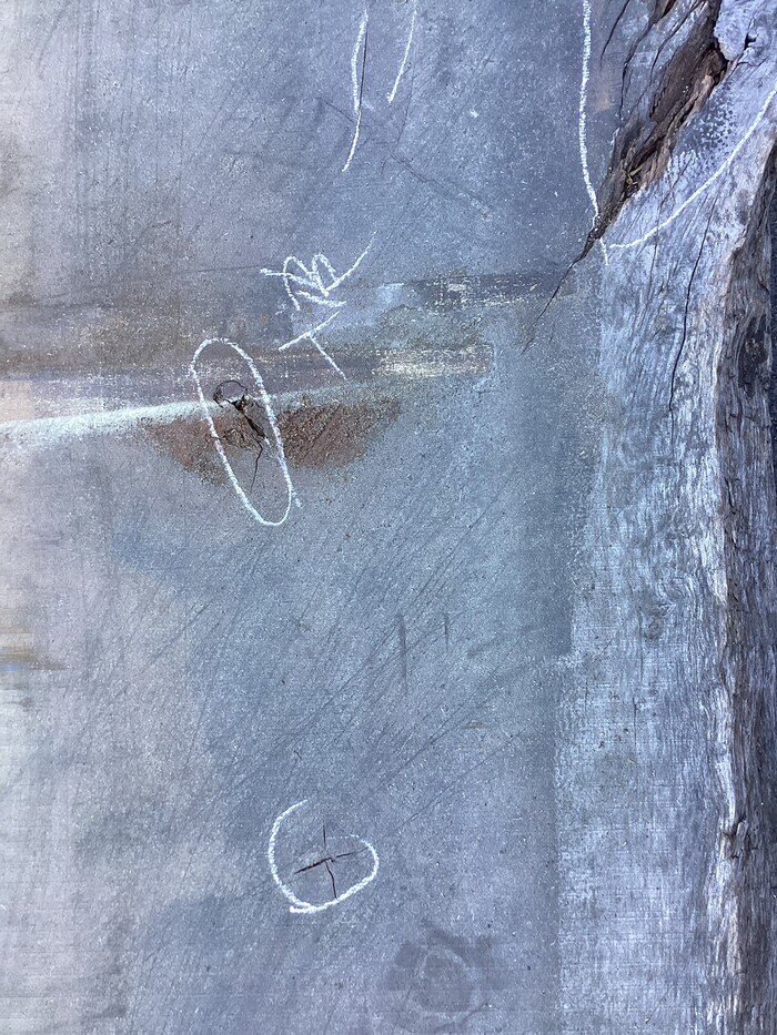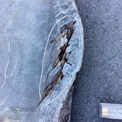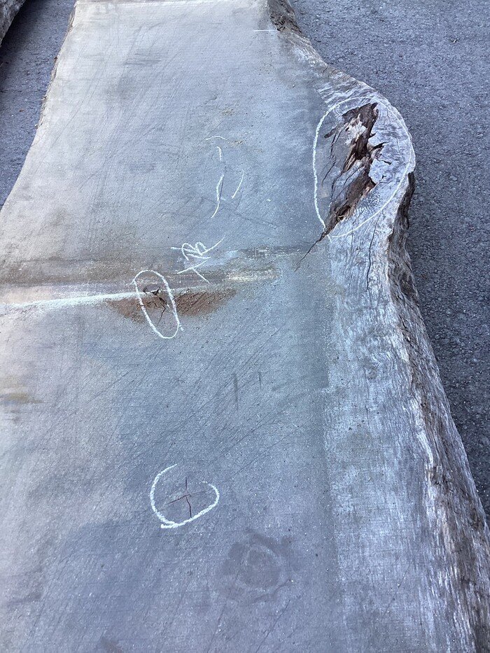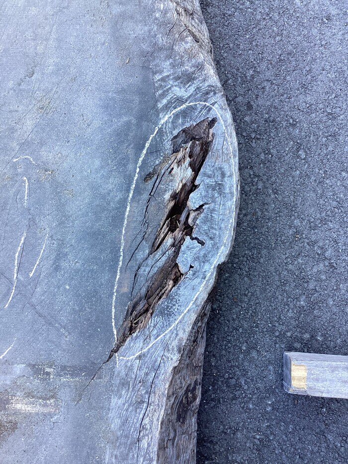 元から1.2mの間に割れと入皮、2.6mに130mmの節割れがあります。