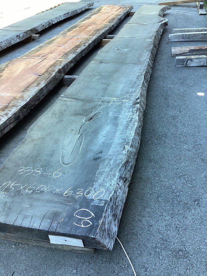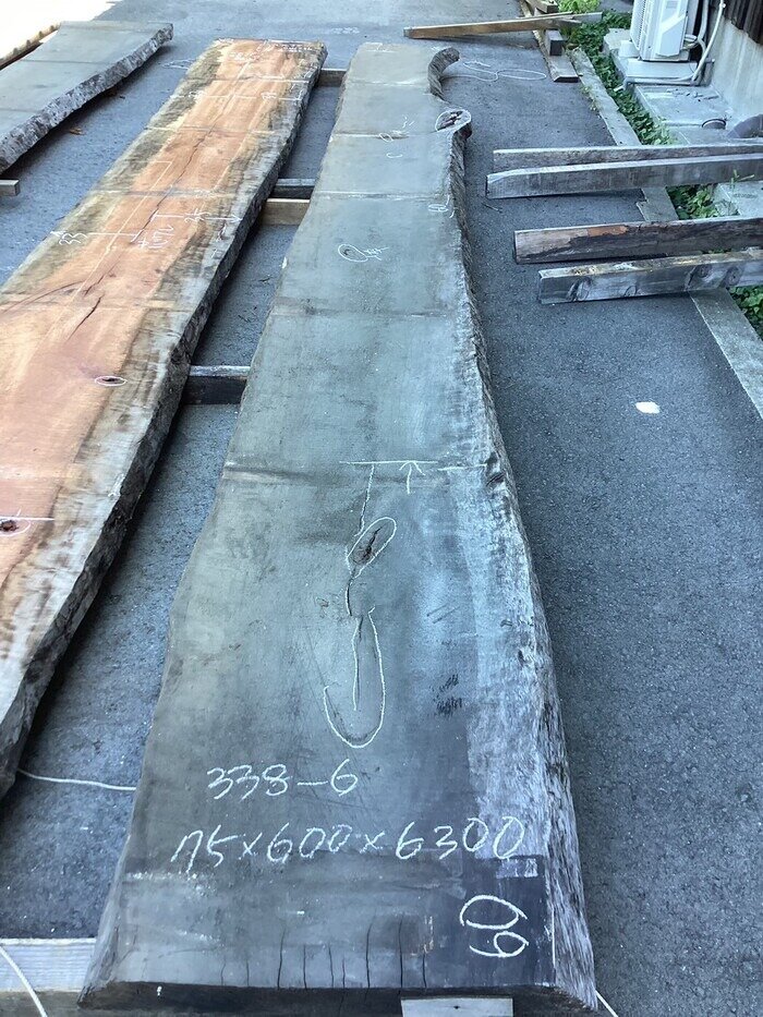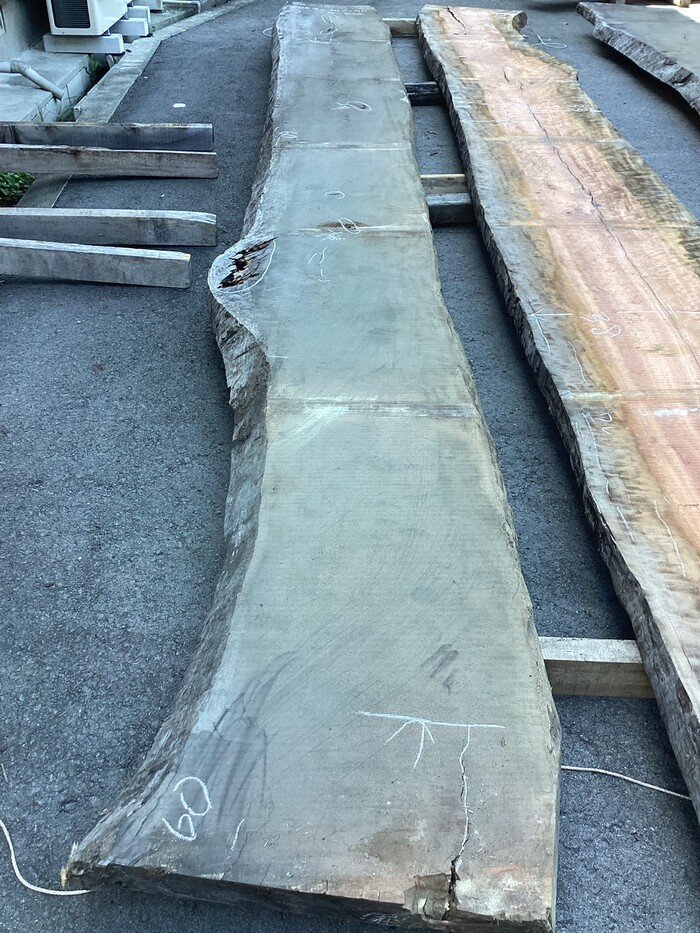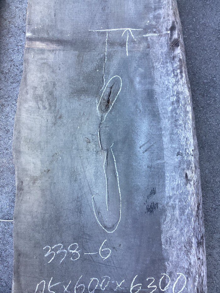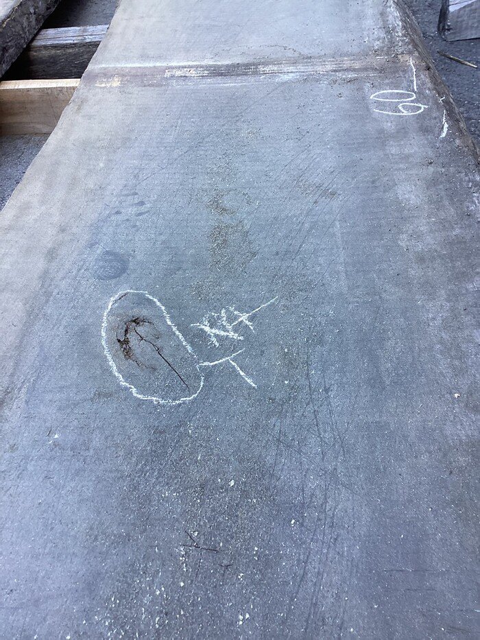 末から2.3mに入皮と末から1.7~2.2mの付近の耳に大きい節穴、末から2.6mに節1個、末から300mmの割れが入っています。
