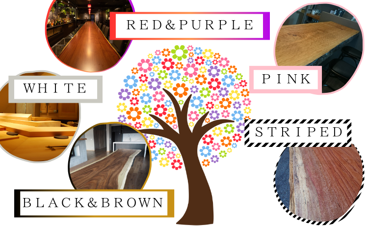 木材の色に着目し、5つのカテゴリーに分けてその魅力や適した用途をご紹介します。