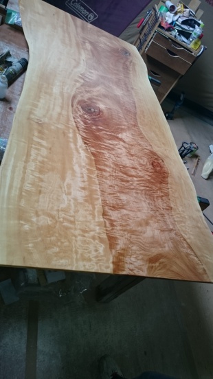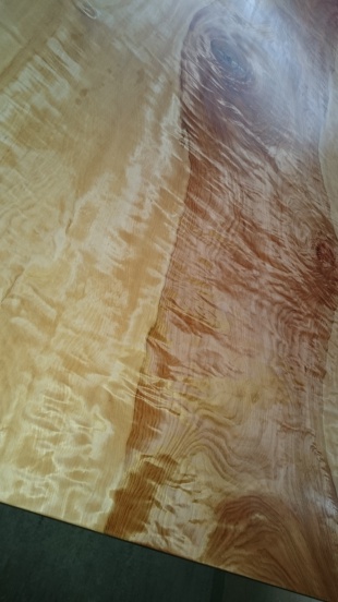 下地研磨♯320でオイル一回塗りなのに眩いばかりの縮み杢が表れています。